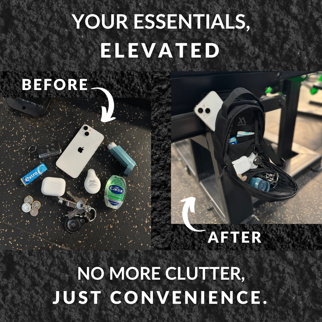This bag is the BOMB. I’ve always been stuck between lugging a giant gym bag with all my clothes around with me for a whole session, or going bag-less, but then having to dump my phone and keys on the manky floor so I don’t crush them in my pockets. Thanks to this bag I no longer have to suffer! I’m not constantly picking up and putting down my stuff and I can slam the bag anywhere on the equipment I’m using. It’s so satisfying. It holds everything I need, my phone, keys, inhaler, AirPod case, lifting straps, with space to spare! Definitely the most convenient gym accessory I’ve bought. Would strongly recommend!